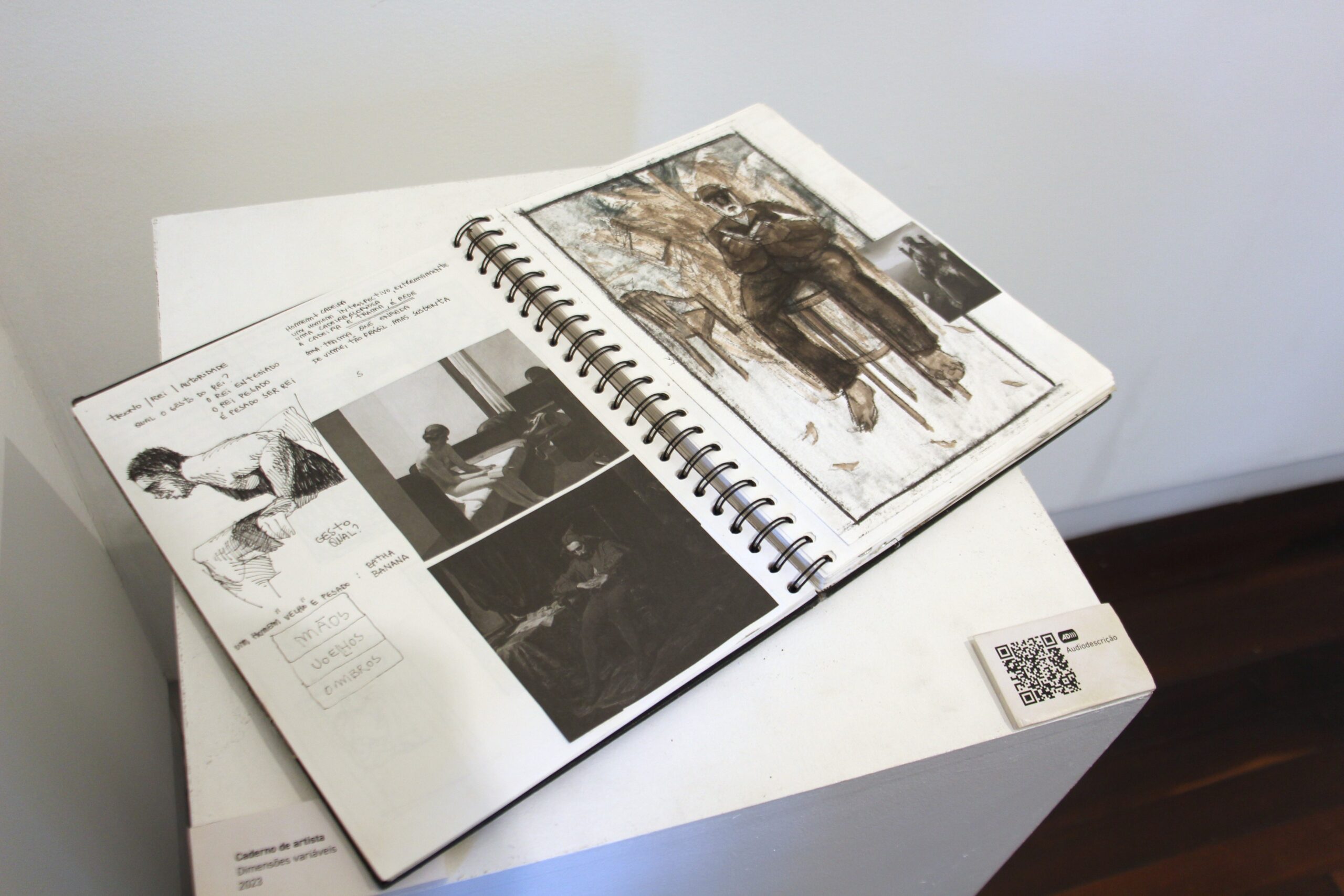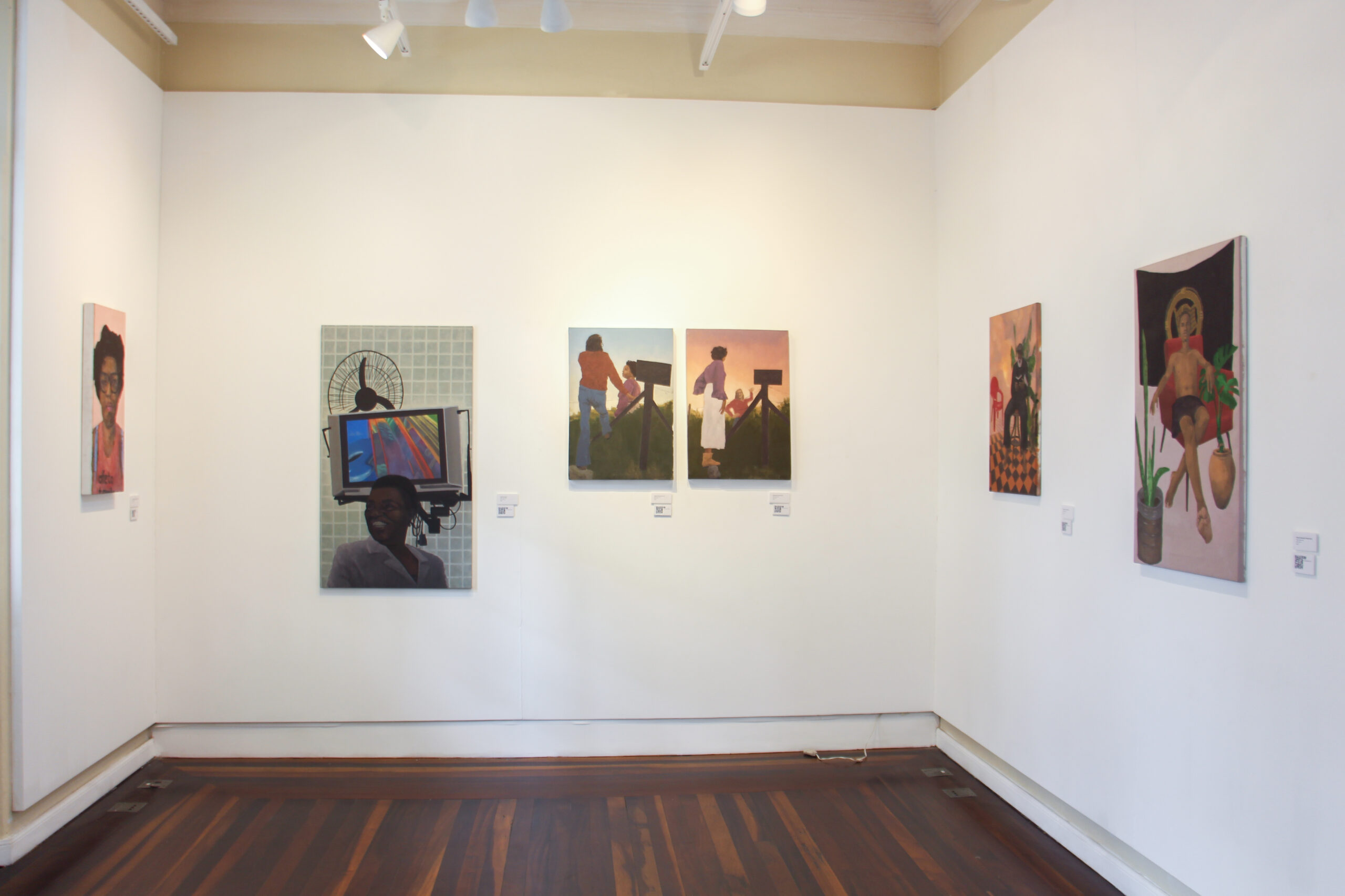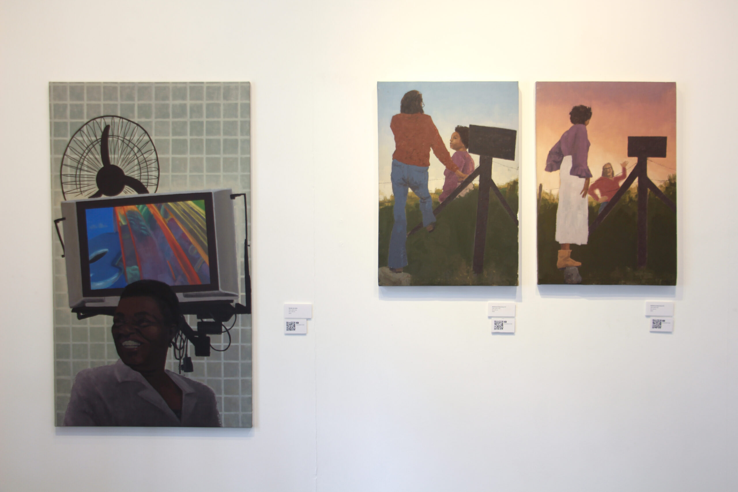 A exposição apresenta um recorte de minha produção entre 2023 e 2024 abordando a relação entre imagens históricas e a experiência afro-brasileira, reencenações são criadas junto às redes de afetos – amigos, irmãos de santo e da rua – estabelecidas nas vivências em Florianópolis. A partir de registros em vídeo, junto à escrita fabulatória, desenho e o embate com a pintura se dá a elaboração de outras imagens. Processualidades que vão a tecer tramas entre a História da Arte, saberes da oralidade afro-brasileira, imagens de arquivo,