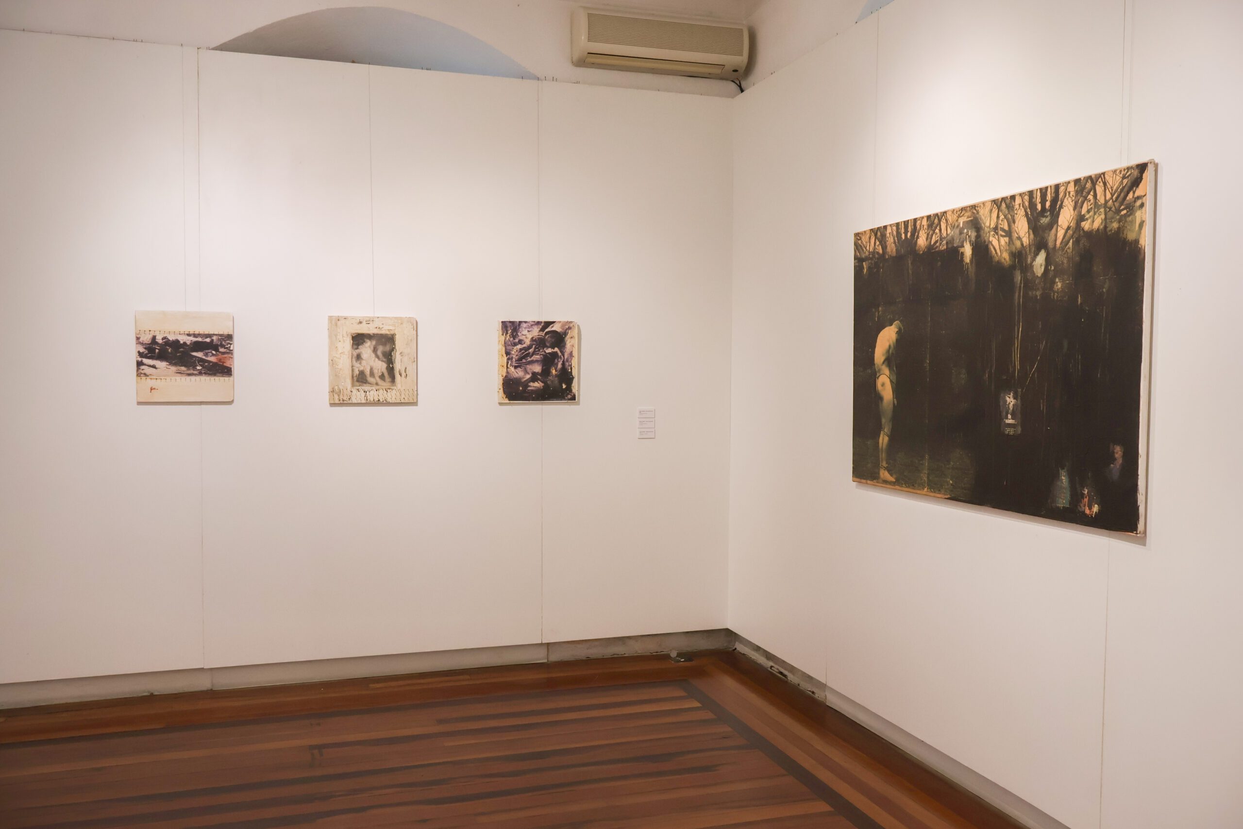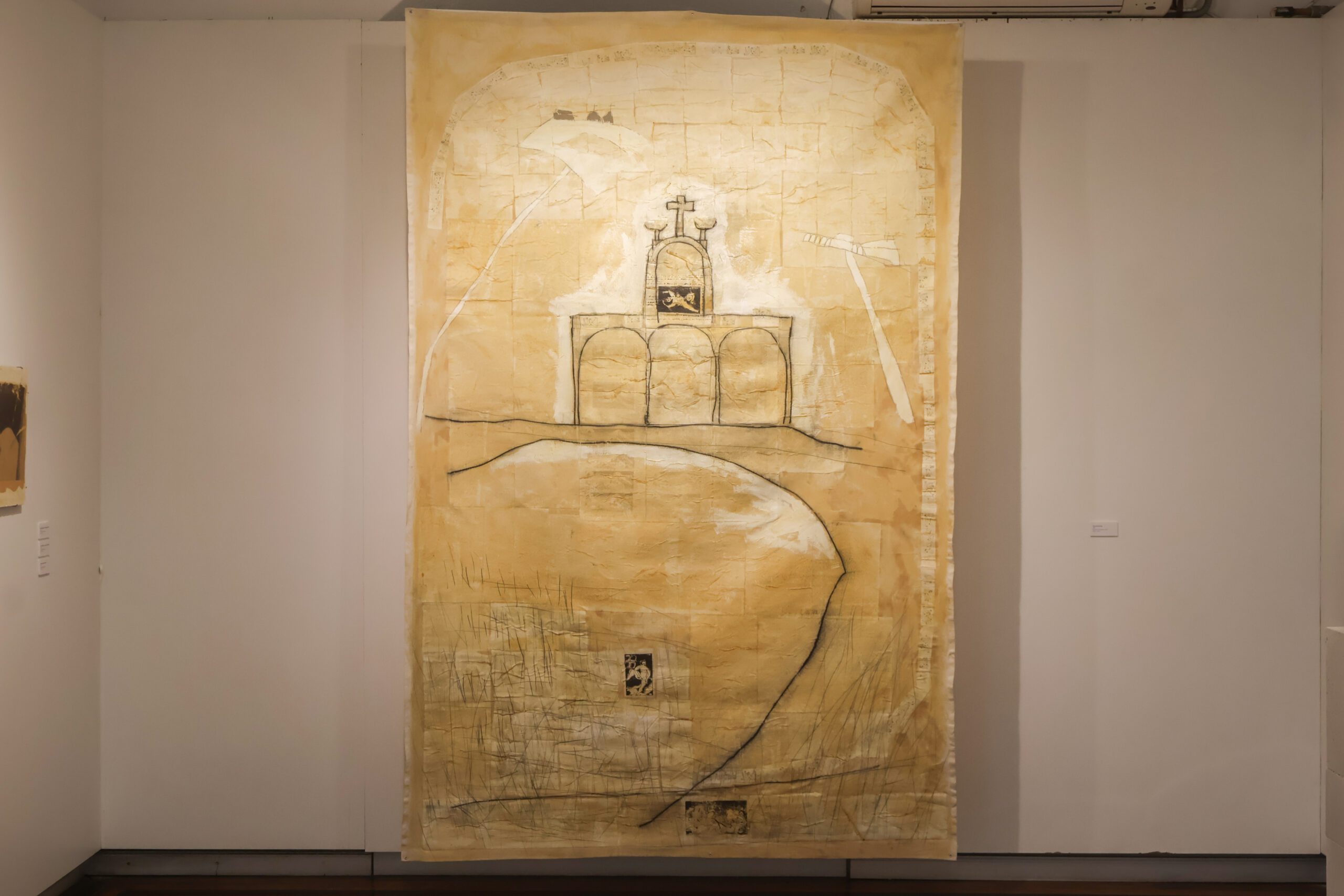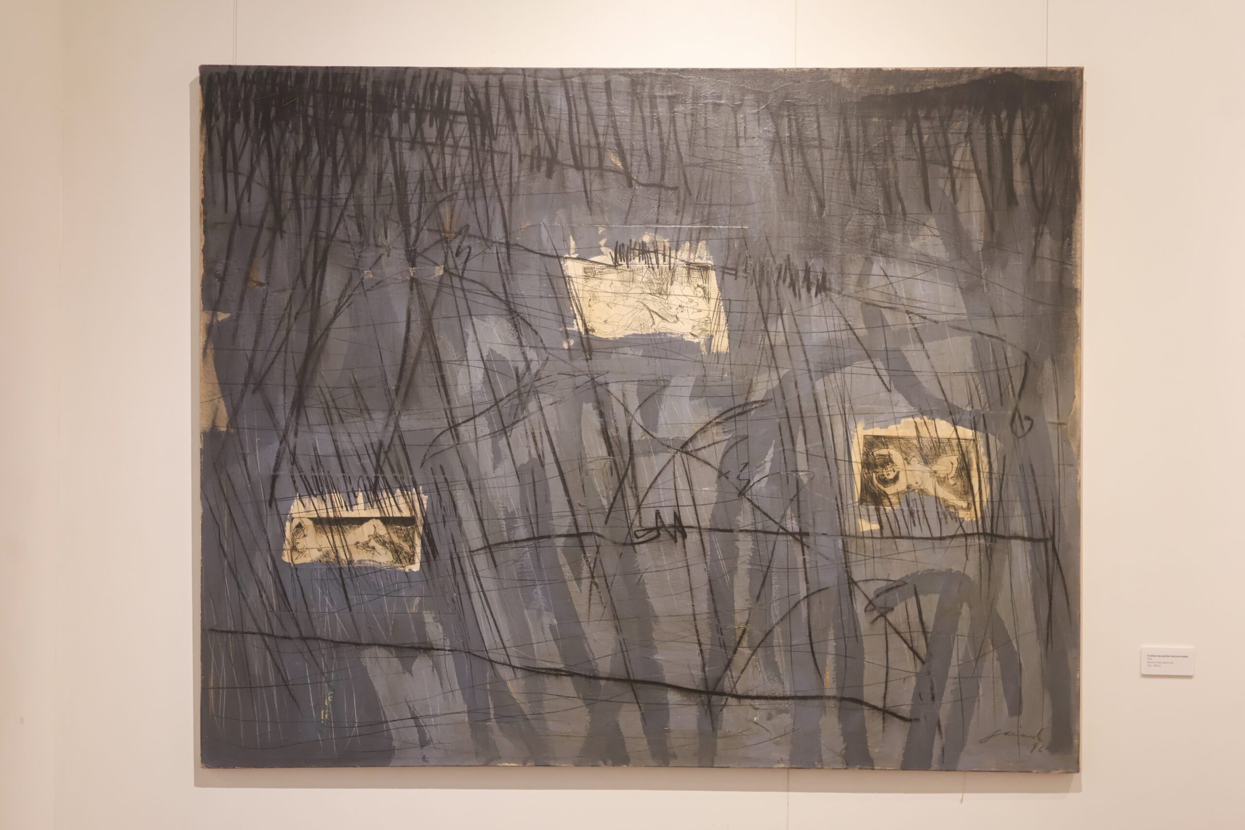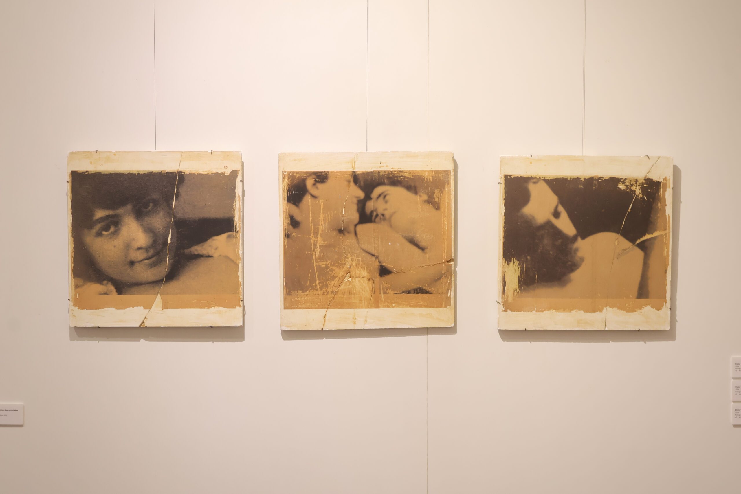 Assim, cientes de todas as possibilidades de fabular novas histórias, trazemos para esta exposição uma destas narrativas, a fim de apresentar um aspecto da produção do artista, eleito aqui para orientar a escrita deste novo capítulo: a recorrência (a insistência, pode-se dizer), de figurações, de símbolos ou de certos detalhes e signos visuais nas imagens produzidas pelo artista no decorrer de mais de três décadas de obras. São exemplos – os quais, a partir do momento que são vistos, não se apagam mais -, o modo como a repetição de elementos (a cruz, os corpos nus, a serpente e a figura do lagarto) e a reincidência — não sem distorção — do material fotográfico por ele apropriado, ou ainda, a curiosa proximidade de sua produção com o impulso de criação mostra relacionar-se, sempre, com certos ritos em torno da morte (ou melhor, nossos usos e abusos das relíquias, cenotáfios e lápides). Tornadas, por Gaiad, em aparições, tais repetições atravessam diferentes séries e conjuntos, de modo que, à maneira de fantasmas, cada obra parece carregar consigo o vestígio de sua antecessora, assim como a conversa – infinita – entre o artista e o tempo.